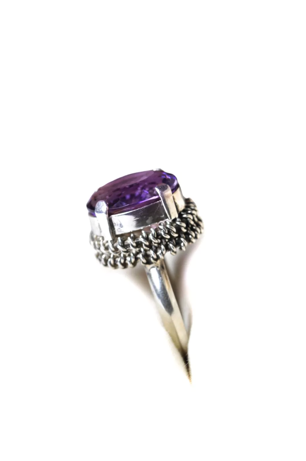 +ANILLO DE PLATA CON GRAN AMATISTA CORTE OVAL AÑOS 40S